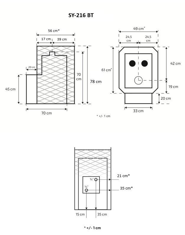 Round Net-Casing Sauna Stove SY-216 BTGL with Boiler Connection (Back Side)