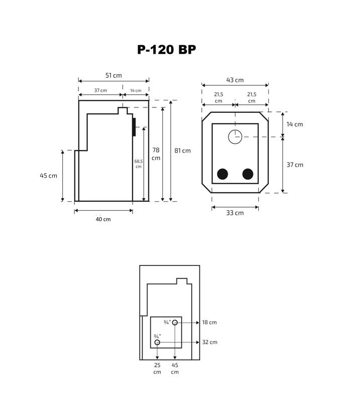 Skamet P-120 BP is a high-performance wood-burning sauna heater for sauna rooms with a volume between 16 and 25 m³. This model features a right-side boiler connection, allowing for easy attachment to an external boiler system — perfect for users who want versatile heating options in one unit.