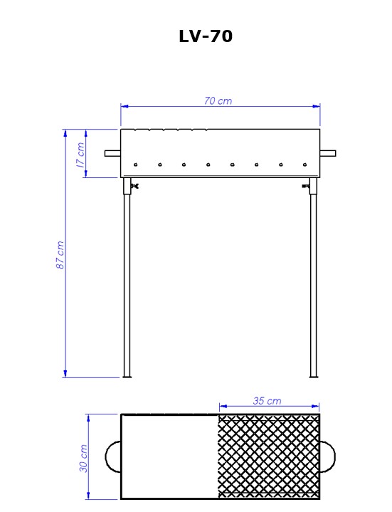 Nasz gama produktów zawiera również rozmaite ruszty do grilla. Standardowe grille są zrobione z metalu o grubości 3 mm. Grusze grille lub grille zrobione wykonane zgodnie z życzeniem klienta, mogą być robione na zamówienie. Modele są różne: posiadające lub nieposiadające pokrywy, zrobione z metalu żelaznego lub stali nierdzewnej. Ruszty do grilla posiadają nóżki dające się wymontować. Przykładowe wymiary (długość x szerokość x głębokość x): Ruszty do grilla są dostępne w następujących rozmiarach: 100x40x17cm / 70x30x17cm / 50x30x17cm. Wysokość – 90cm. Każdy model jest wyposażony w kratę, która pokrywa część rusztu i może zostać zdemontowana.