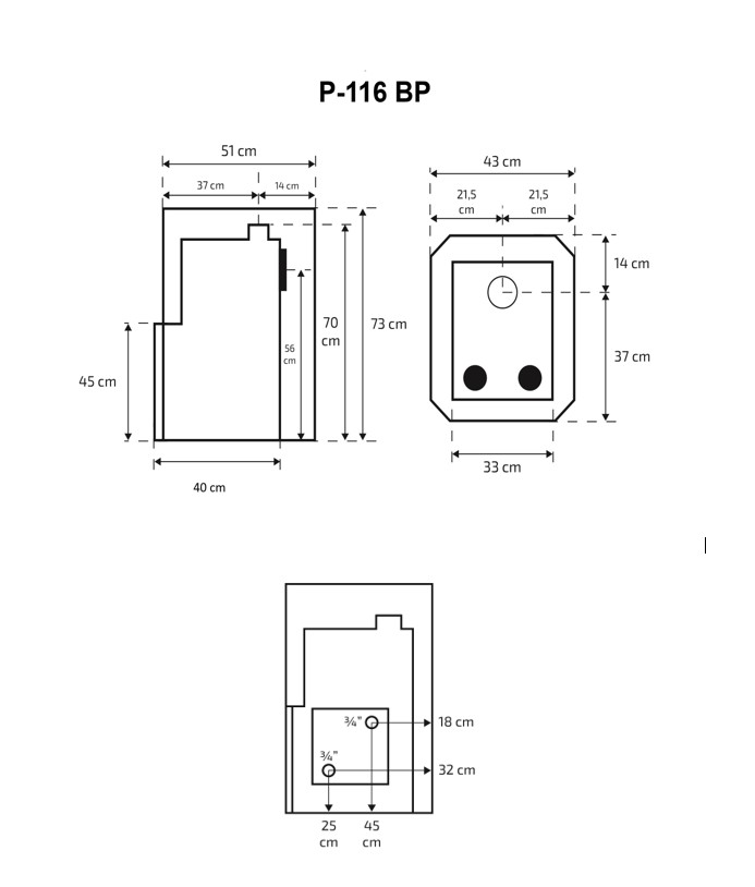 Skamet P-116 BP on varustatud boileriühendusega paremal küljel – see võimaldab sama ahju kasutada nii sauna kui ka sooja tarbevee soojendamiseks. Metallkorpus tagab vastupidavuse ja lihtsa hoolduse.